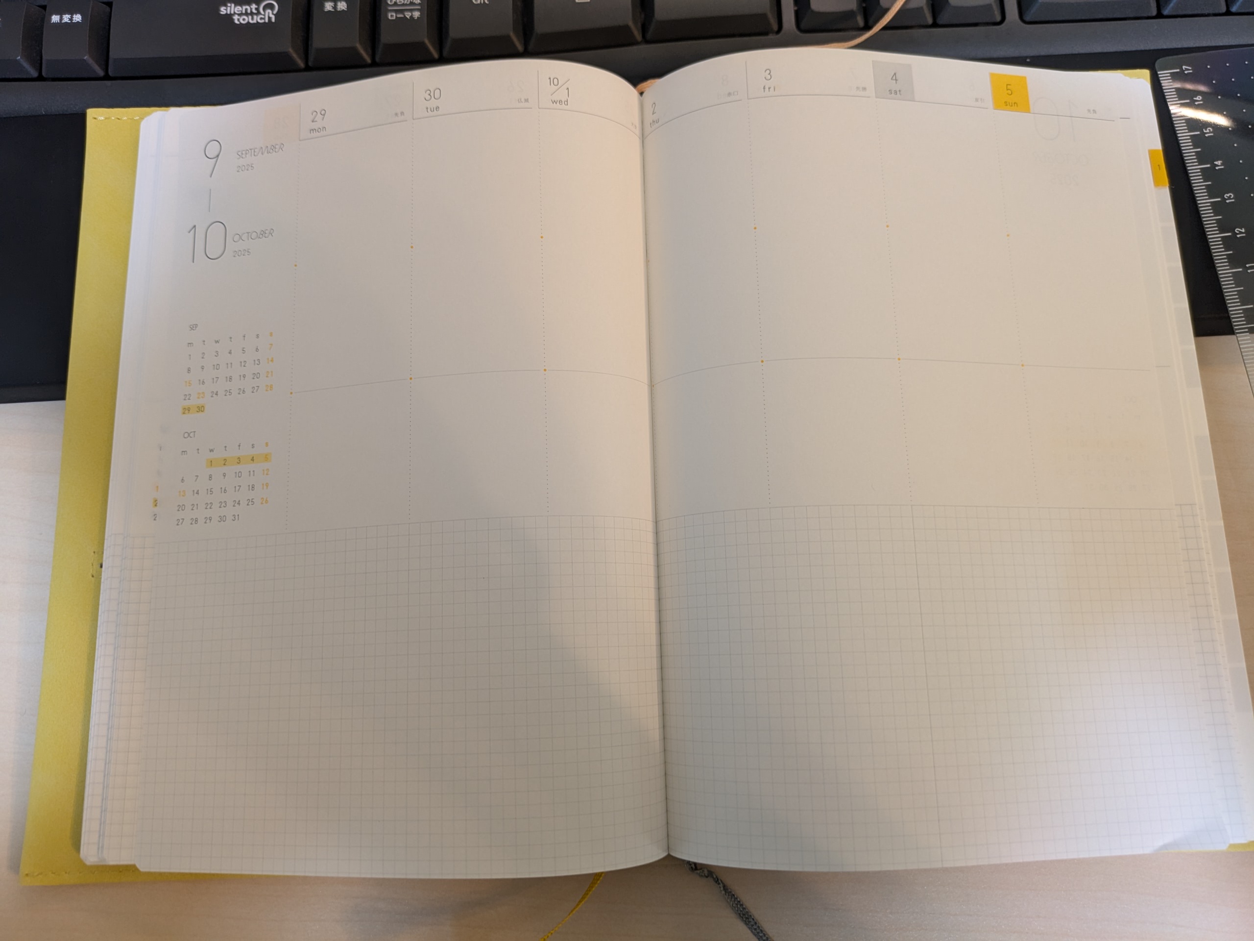 私が購入したSUNNY手帳はセミバーチカル形式のウィークリーでした。