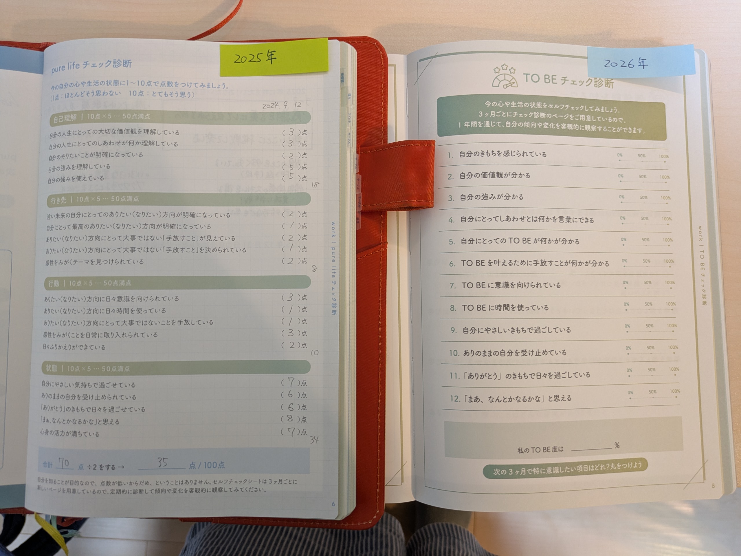 2025年版の「pure life チェック診断」は、2026年版では「TO BE チェック診断」に変わったようです。