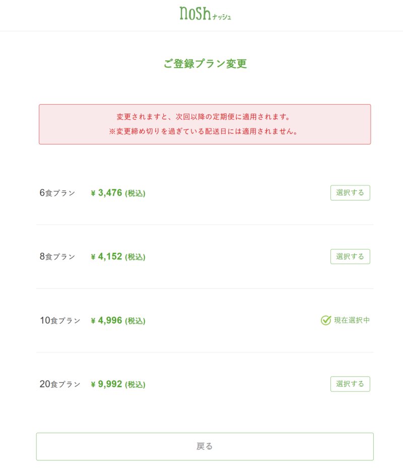 nosh clubランク29の筆者が選択できるプランはこんな感じです。