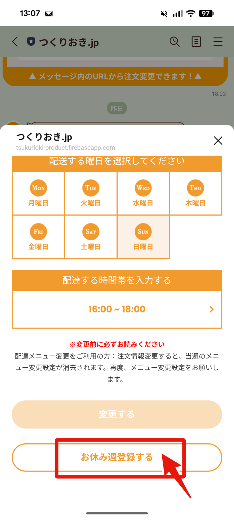 また、ツクリオには「注文をお休み」できる機能もあるので、どうしても苦手なメニューがある人はお休みするのもアリかもしれません。