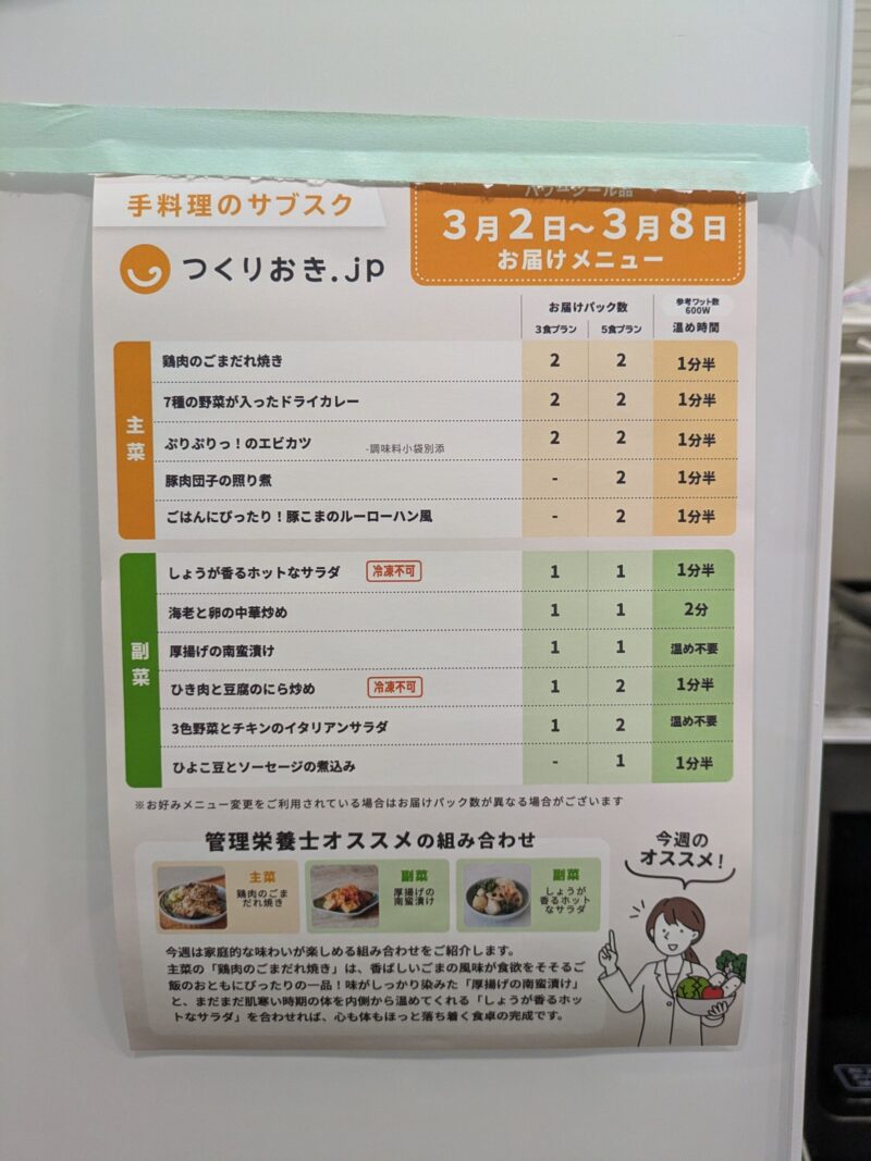 ただし、価格面では少し高めなので、特に忙しい週や、ちょっと贅沢したい時などに利用するのが良いかもしれません。また、2人暮らしの方の場合は、量の調整が必要なので、その点は考慮が必要です。